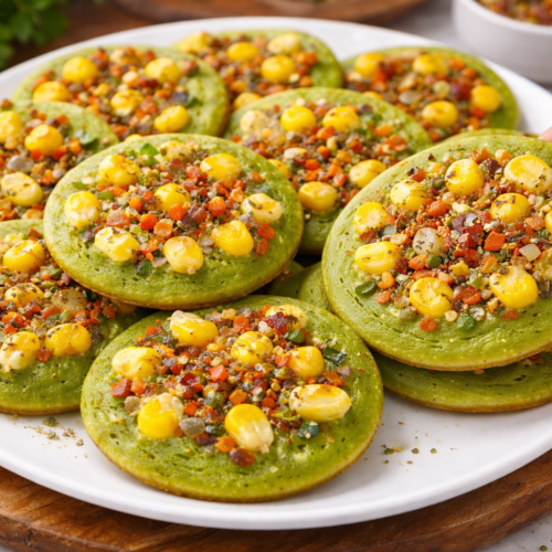 What makes this recipe special is how easily it comes together without any complicated steps. It does not require fermentation, deep frying, or expensive ingredients. The pancakes look vibrant because of the green batter and colorful toppings, and they taste fresh, soft, and slightly crisp at the same time. It is one of those recipes that feels homemade, healthy, and satisfying.