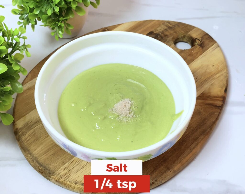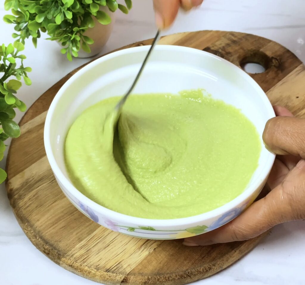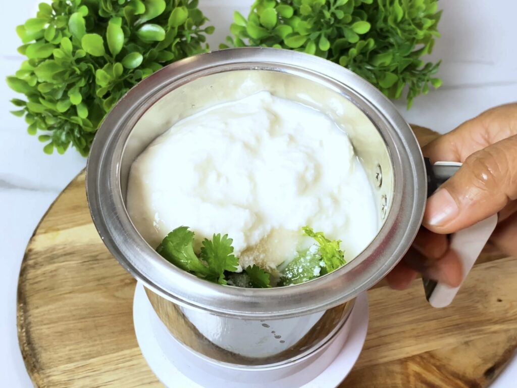 - Add green peas, coriander leaves, green chilli, ginger, semolina, curd, and water to a mixer jar and grind into a smooth, lump-free batter.
