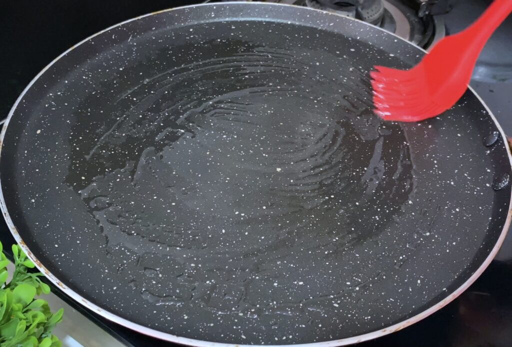 6. Heat a tawa on low flame and grease it lightly with ghee or oil.